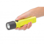This explosion proof high power LED lamp from the AccuLux series model HL 10 EX is made of a very impact-resistant and waterproof plastic casing (IP 68). The innovative LED torch with a length of only 17 cm and a weight of only 167 g is the leader among comparable torches. Through the super strong power LED with approximately 7000 Kelvin colour temperature, the HL 10 EX shows its strengths with its bright white light. This high-power LED torch offers a operating time of approximately 11 hours through the 4 Mignon batteries included in the delivery (AA). The user will appreciate that the bulbs will not have to be replaced any more thanks to the high lifespan of the strong, but power-saving LED lamp. The HL 10 EX is ideal for professional use as a hand and helmet lamp, for example, for the fire department.