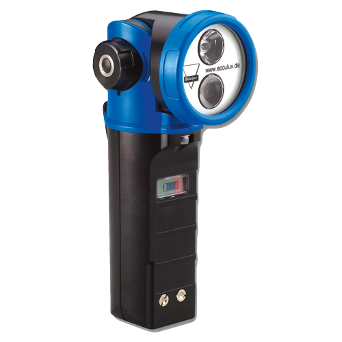 The microprocessor-controlled, rechargeable flexible head safety lamp, model HL 20, is made of shock-proof plastic. The lamp is equipped with two switchable high-performance LEDs: a power LED with focussed beam for far range and a 1 watt power LED with a wide emission for close range. The environment-friendly lithium ion battery without memory effect is secured against deep discharge and can be permanently charged through the intelligent circuit layout. This can be replaced by the user. The light can be used flexibly due to the 4-stage adjustable lamp head. The lamp can also be attached to protective clothing through a clamp. The HL 20 can be operated in a permanent and blinking function and used as a warning light. The charging units for 100-230V AC, 12V DC and 24V DC can be delivered from 1 to 5x.