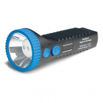 The two-part user-friendly rechargeable light from the AccuLux series model PowerLux LED consists of a lamp head and charger with integrated plug and is equipped with a power LED. The environment-friendly NiMH battery without memory effect is secured against deep discharge and can be permanently charged through the intelligent circuit layout. The PowerLux charger can be recharged up to 1000 times and guarantees flexibility and mobility with its integrated power plug. The robust and fall-safe plastic casing is designed for the hardest use. A charger to connect to a car cigarette lighter can be purchased as an accessory. With a 3-hour operating time and 1000 m range, the PowerLux LED is one of the leading LED lamps of its class.