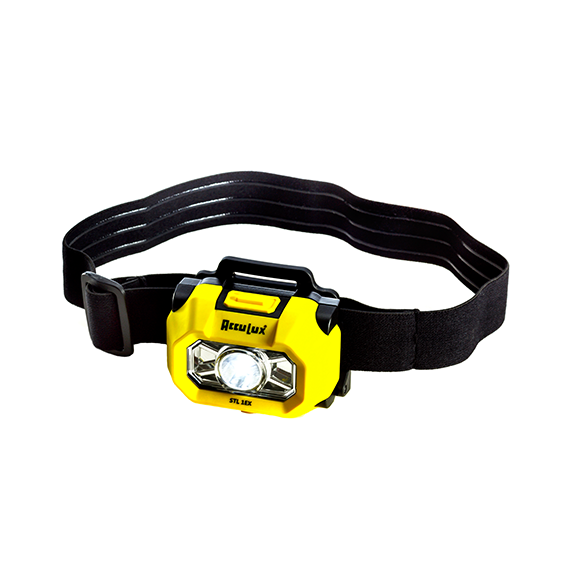 STL 1 EX is a high-power LED head lamp for use in hazard zones and is equipped with three AAA alkaline batteries. The lamp has two light modes, is extremely bright and has a long operating time.